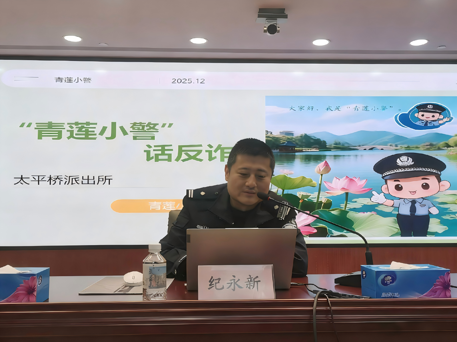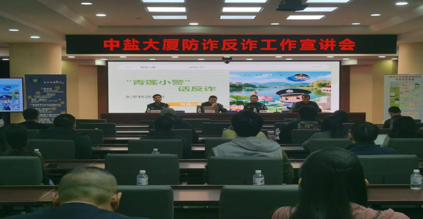 为进一步提升全员防诈反诈意识与应对能力,有效遏制电信网络等诈骗案件发生,12月1日,中盐大厦联合太平桥街道和辖区派出所召开了防诈反诈安全工作培训会议。派出所副所长纪永新及有关民警出席会议并做防诈知识宣讲,中盐大厦副总经理石庆贺主持会议。